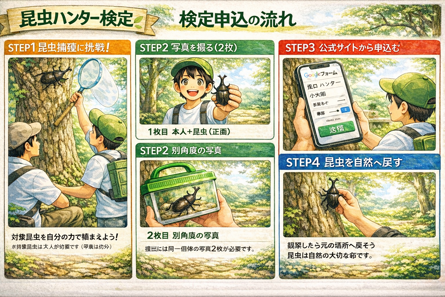 1)昆虫捕獲に挑戦し、写真を撮って申込フォームを送信